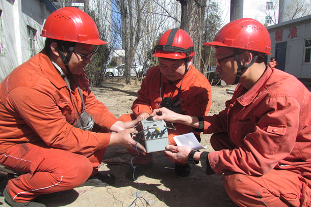圖為運維人員在檢查避雷設施